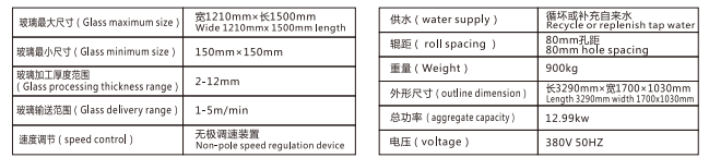 5.清洗段 整機輸送膠輥采用丁晴膠鑄膠材質、45#鋼軸芯結構;清洗室共5組尼龍毛刷(毛刷外徑80mm),分別由上下一組毛刷電機帶動鏈條傳動順時針方向清洗;風干段采用6組進口吸水綿,上下壓縮玻璃表面來達到吸干明水;